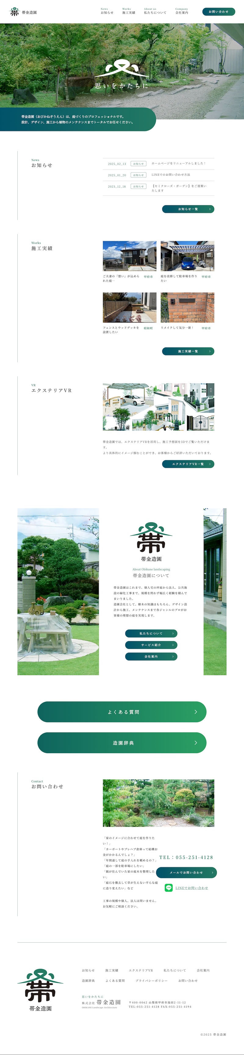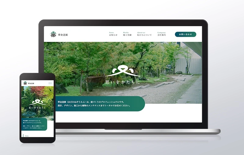 帯金造園様のコーポレートサイトを制作いたしました。造園業としての信頼感や事業の特長が伝わるよう、丁寧な導線設計とビジュアルで構成しています。